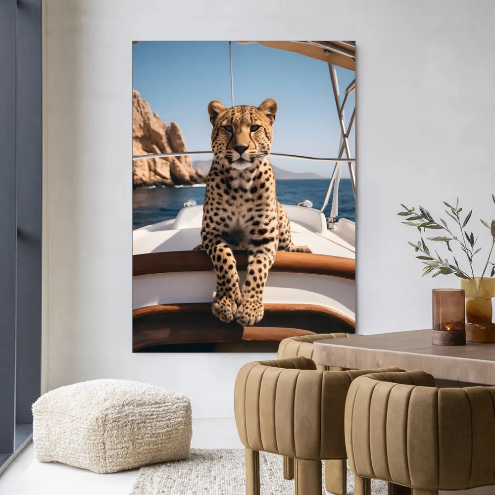 Urban Cotton Wandkleden|Wandkleed Sailboat Cheetah in maat en frame naar keuze