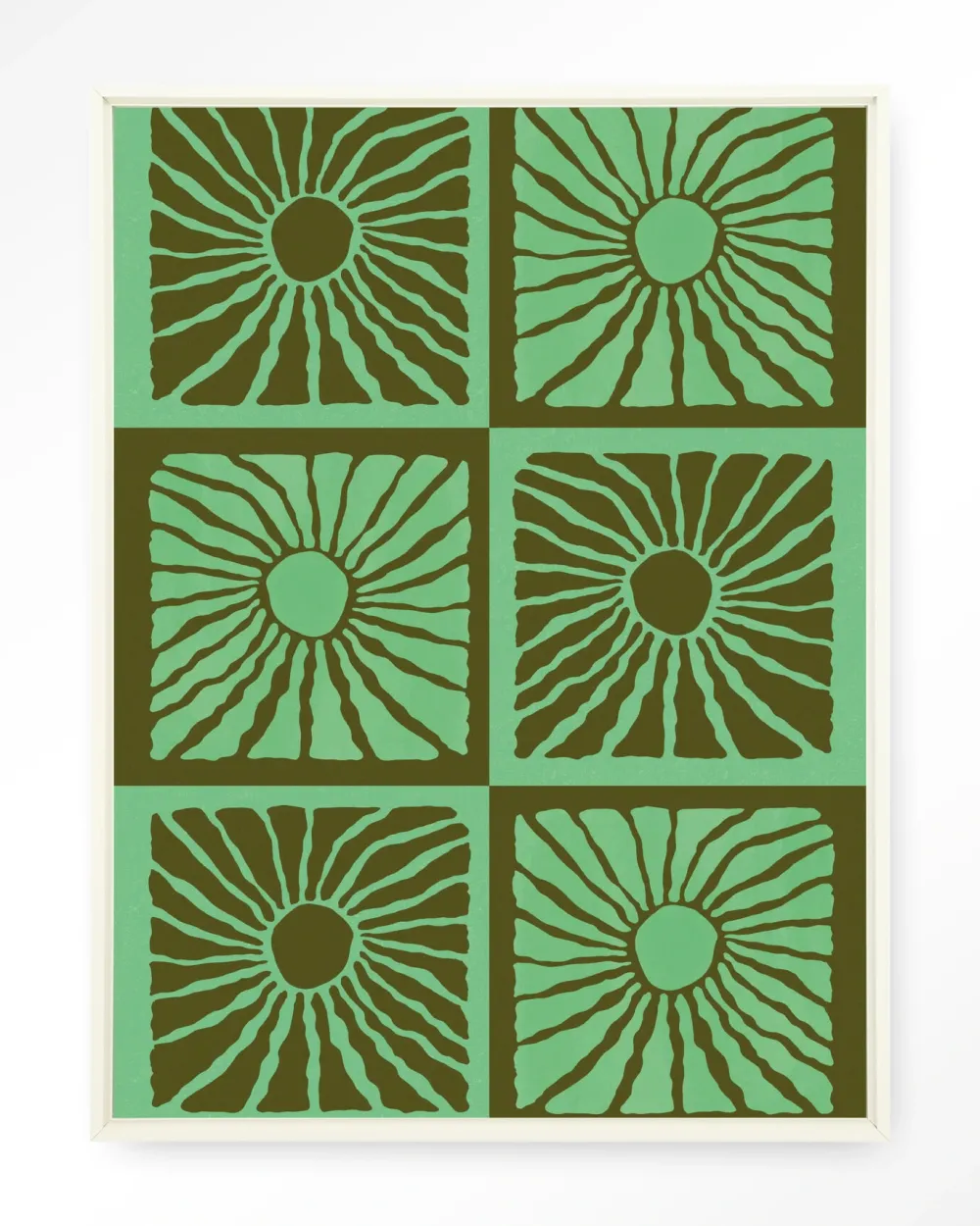 Urban Cotton Wandkleden|Wandkleed Suns In Green in maat en frame naar keuze