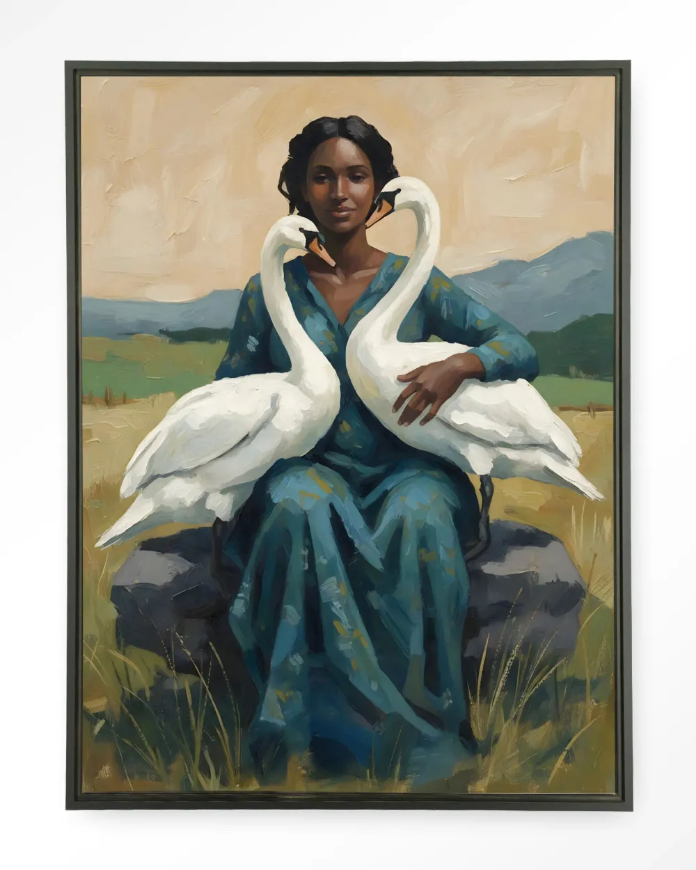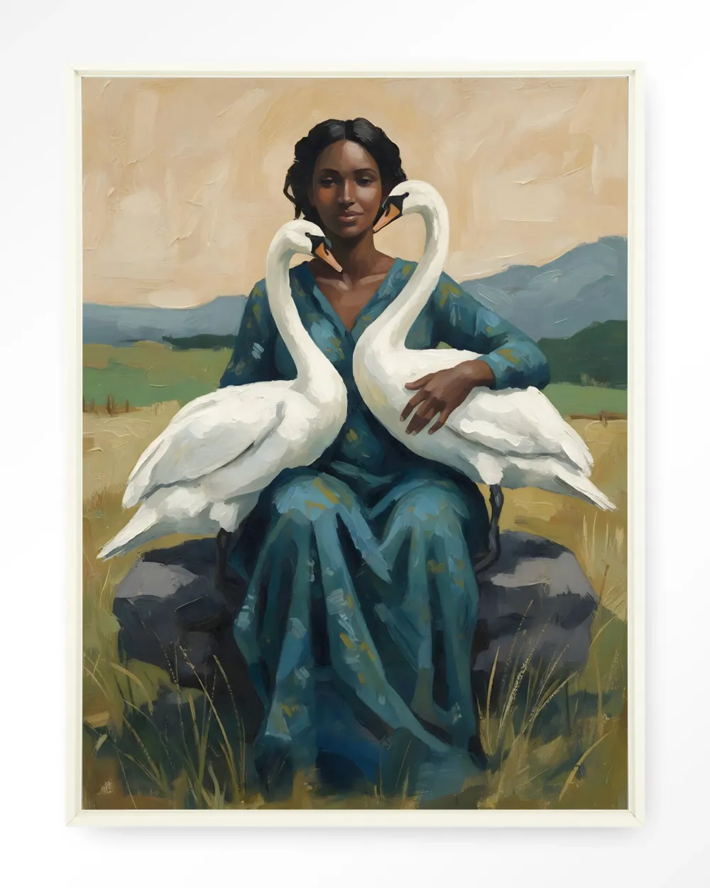 Urban Cotton Wandkleden|Wandkleed Swan Mother in maat en frame naar keuze