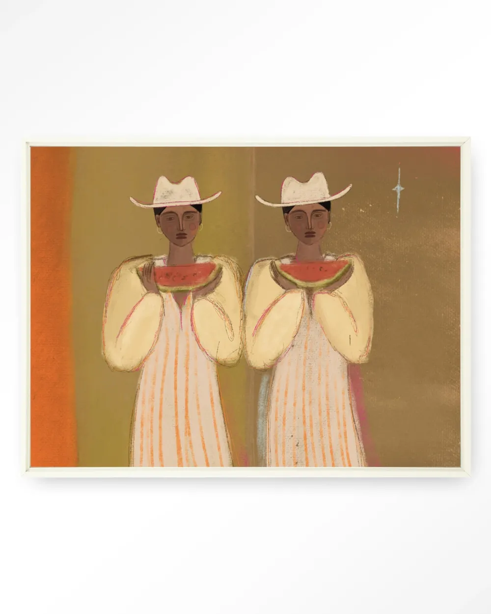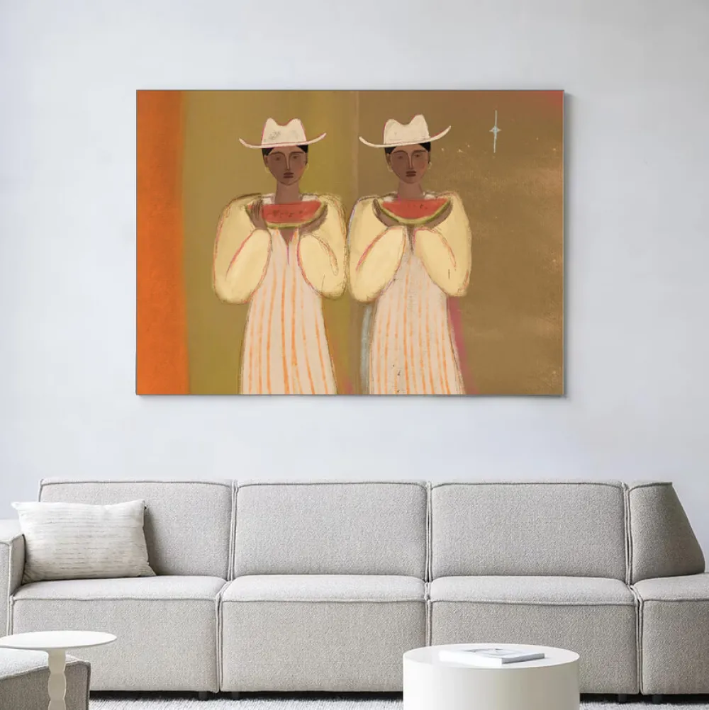 Urban Cotton Wandkleden|Wandkleed Watermelon Girl in maat en frame naar keuze