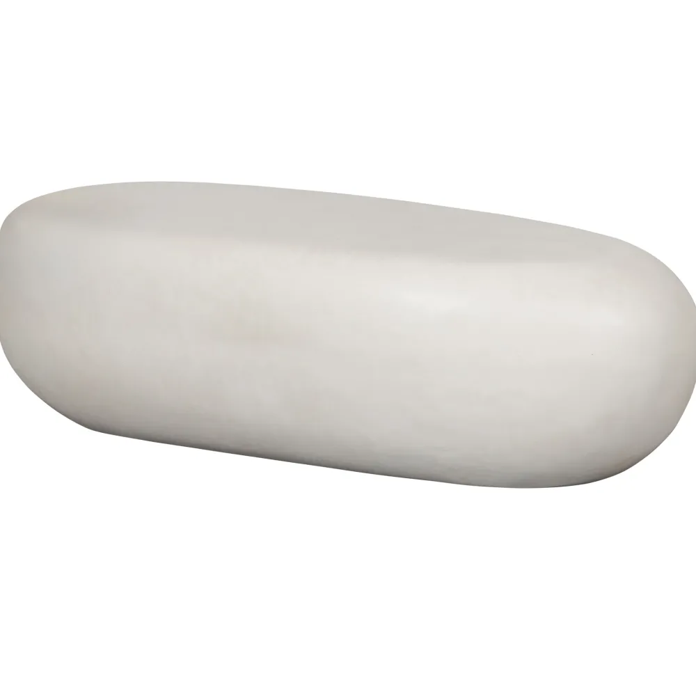 Bijzettafel Pebble is een eigen ontwerp uit de collectie van het Nederlandse merk vtwonen. De tafel is gemaakt van betonlook fiber klei met een frisse, witte afwerking. Een uniek item met een tijdloos, organisch design.