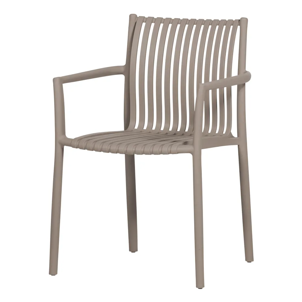 De tuinstoel is gemaakt van polypropeen kunststof dat speciaal geschikt is voor buitengebruik. Het lichtgewicht materiaal maakt het gemakkelijk om de stoel te verplaatsen wanneer je de indeling van je terras wilt aanpassen. Daarnaast bevat het materiaal UV-bescherming, waardoor de stoel weerbestendig is tegen weersinvloeden en zijn mooie uitstraling behoudt.