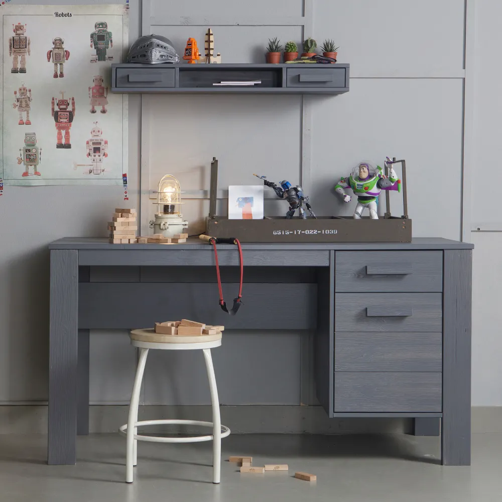 Dit stoere bureau met ingebouwde laden komt uit de collectie van WOOOD. Het bureau is gemaakt van grenenhout en heeft een geborstelde afwerking. Het grenenhout heeft een doorleefde uitstraling waardoor ieder exemplaar uniek is! Dit robuuste bureau voegt zich makkelijk in een eenvoudige werk- of kinderkamer.