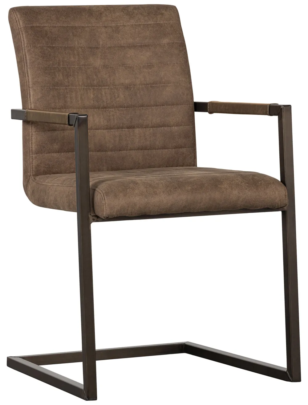 Het frame van de stoel is van metaal en afgewerkt met een zwarte poedercoating. De foam in de zitting is Polyurethaan schuim (normaal schuim) met een dikte van 25 kg/m3. De rugleuning heeft een dikte van ditzelfde foam in 21 kg/m3. De zitting is bekleed met een PU leren stof met vintage look.