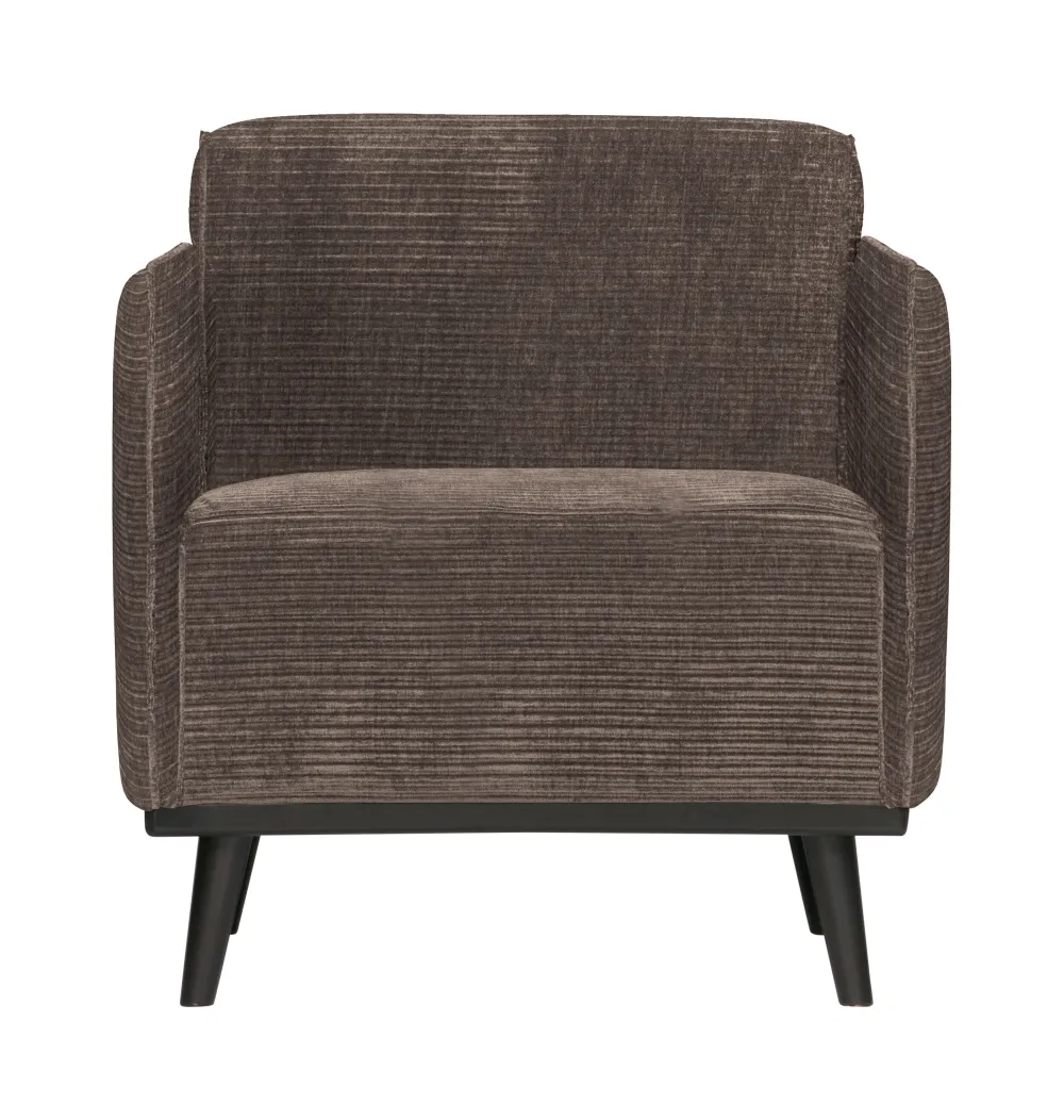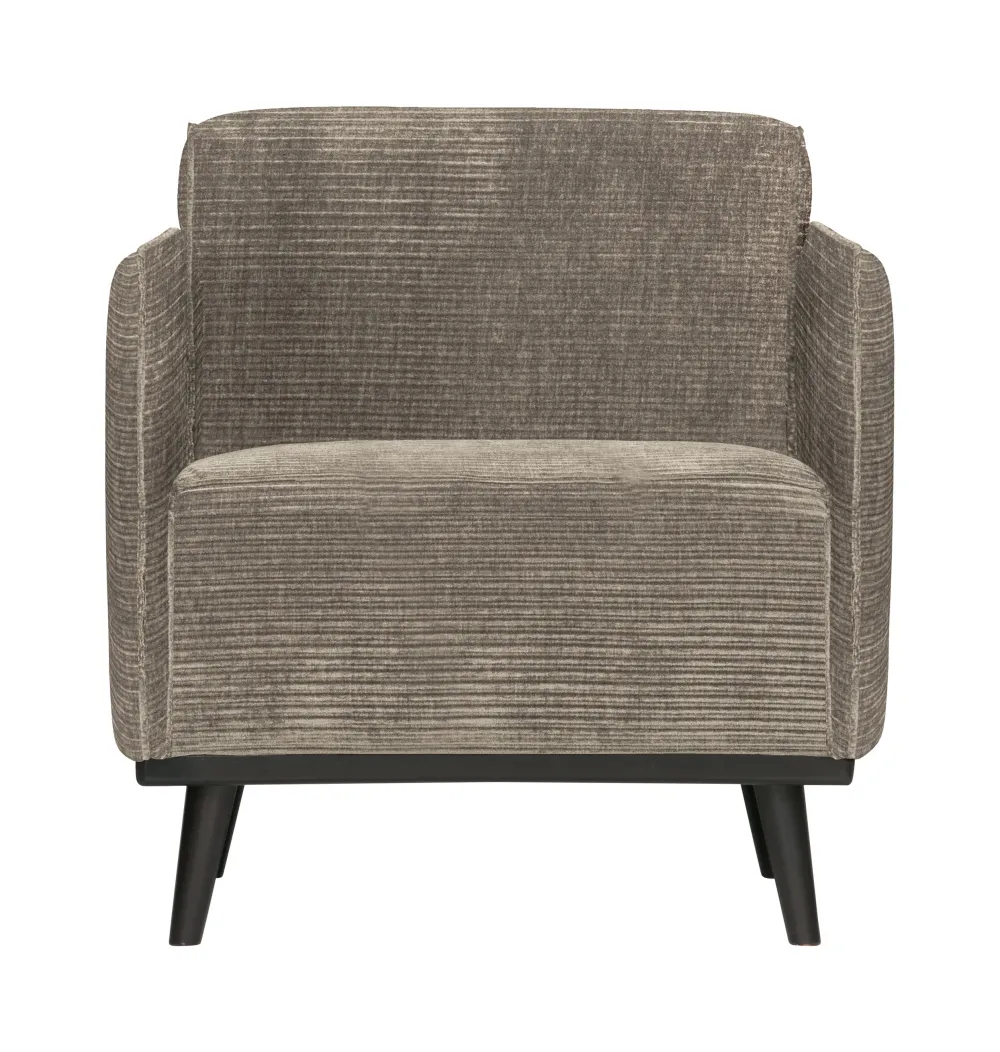 Met de Statement fauteuil haal je een favoriete zitplek in huis. Deze fauteuil uit de Statement bankencollectie van WOOOD is basic, maar valt door de omvang wel op. De fauteuil heeft vriendelijke, zachte vormen en is voorzien van een fijne armleuning waardoor deze een comfortabele zit heeft. Statement is bekleed met een platte brede ribstof en voelt heerlijk aan. De mooie taupe kleur geeft de fauteuil een chique uitstraling. De Statement fauteuil is beschikbaar in meerdere stoffen en kleuren.