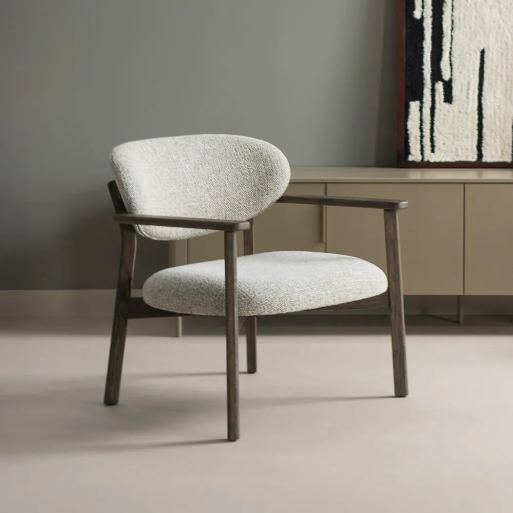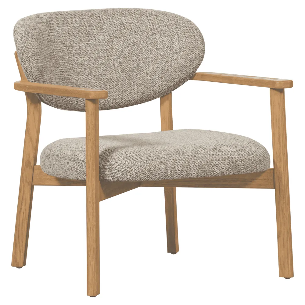 De Udar fauteuil uit de collectie van het Nederlandse merk WOOOD heeft een strakke, eigentijdse uitstraling. De geweven melange bekleding tilt het zitcomfort naar een hoger niveau, terwijl het eikenhouten onderstel pure luxe uitstraalt. De Udar fauteuil is de plek waar stijl en comfort elkaar vinden.