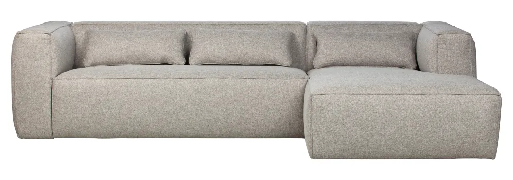 Bean hoekbank (hxbxd) 73x305x96/175 cm heeft een zithoogte van 45 cm en een zitdiepte van 66 cm. De armleuningen zijn 73 cm hoog en 32 cm breed. Dit geeft de bank een mooie body.