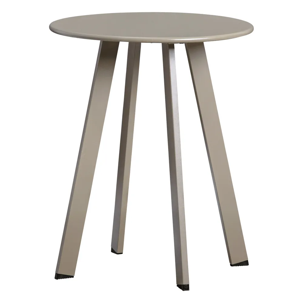 Plaats bij harde vloeren viltglijders onder de poten. Dit voorkomt beschadigingen aan de vloer. Door de waterproof coating is de bijzettafel ook geschikt voor buiten.
