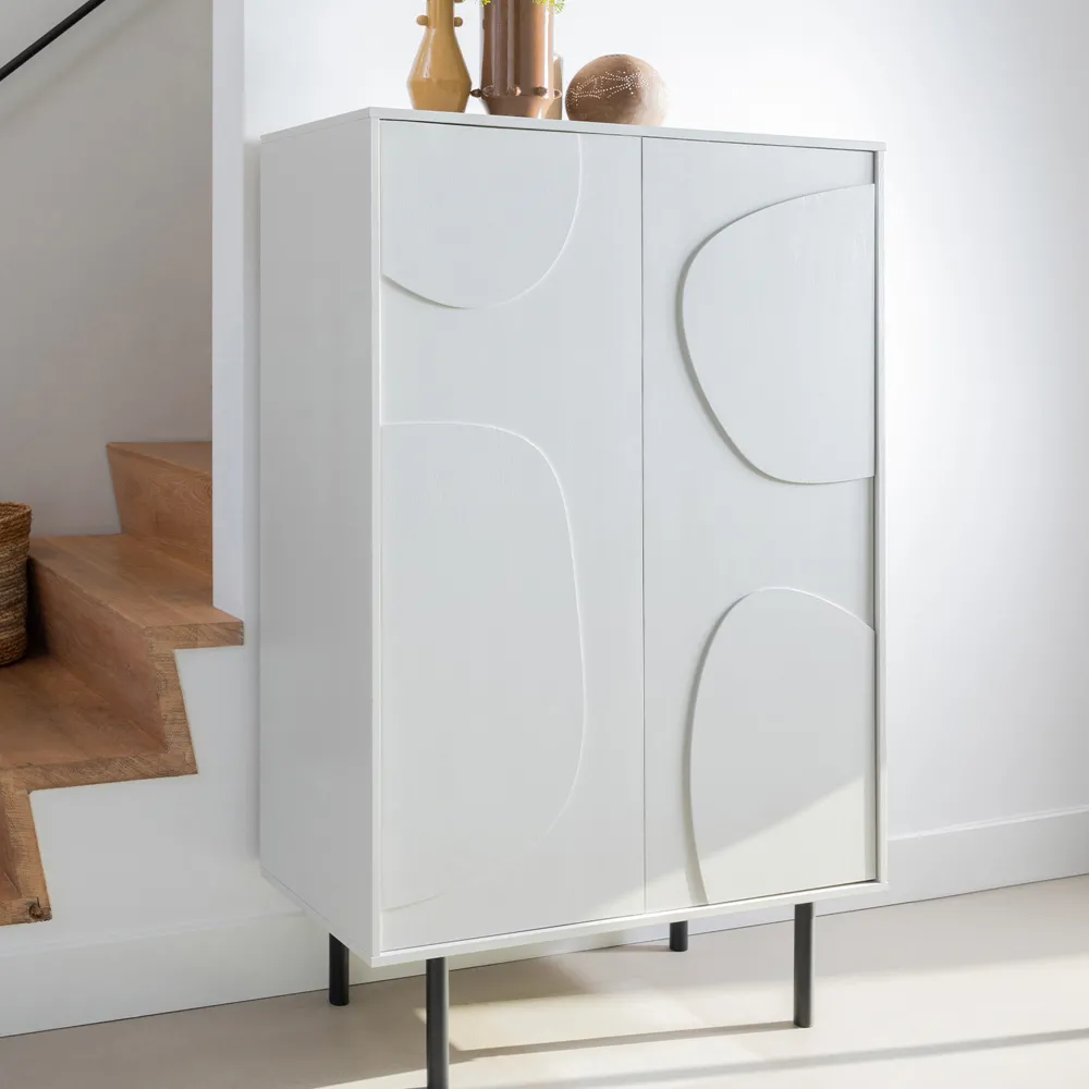 Een clean design, speels houtpatroon en een sprekend kleurcontrast. Dat zijn de kenmerken van deze Cadiz opbergkast uit de collectie van het Nederlandse interieurmerk WOOOD. De bruine afwerking houdt het ontwerp stijlvol en modern met als spannende tegenhanger de stoere, stevige zwarte poten. Het organische decor maakt dat het item speels oogt en zich goed laat gebruiken in een kinderkamer.