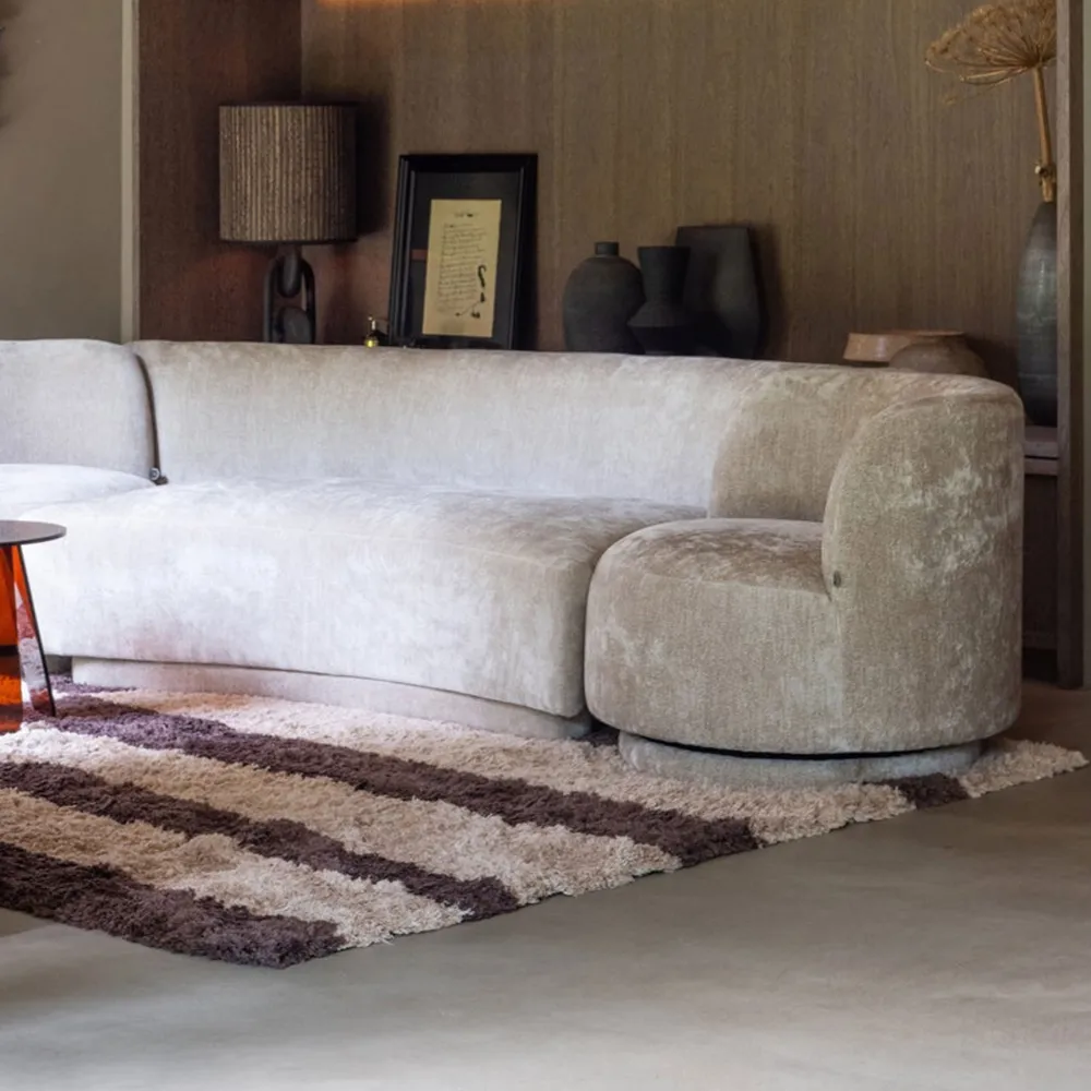 De set is bekleed met grove chenille, wat zorgt voor een warme, luxe uitstraling én een zachte, comfortabele zit. Dankzij het combinatieconcept is deze set ideaal voor gezellige zithoeken, waarbij stijl en flexibiliteit samenkomen.