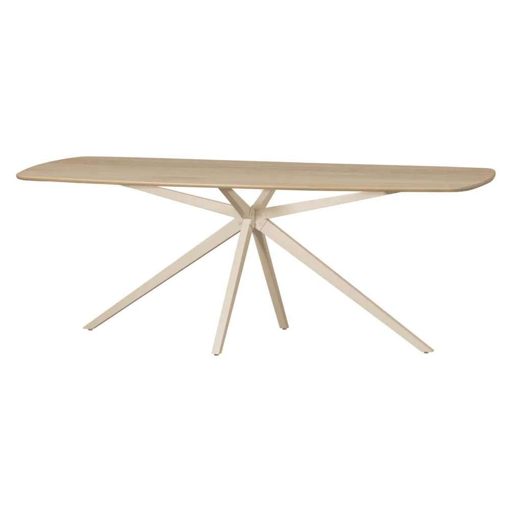 De tafel is vervaardigd uit stroken verlijmd eikenhout met een vingerlasverbinding, wat zorgt voor een speels en levendig motief in het blad. Eikenhout wordt gekenmerkt door de duidelijk zichtbare nerftekening. De natuurlijke imperfecties van het eikenhout maken elke tafel uniek. De tafelbladen zijn licht geborsteld waardoor de nerftekeningen worden geaccentueerd en de beits- en lak kleuren nog mooier tot uiting komen. Het eikenhout in onze collecties is FSC mix gecertificeerd.