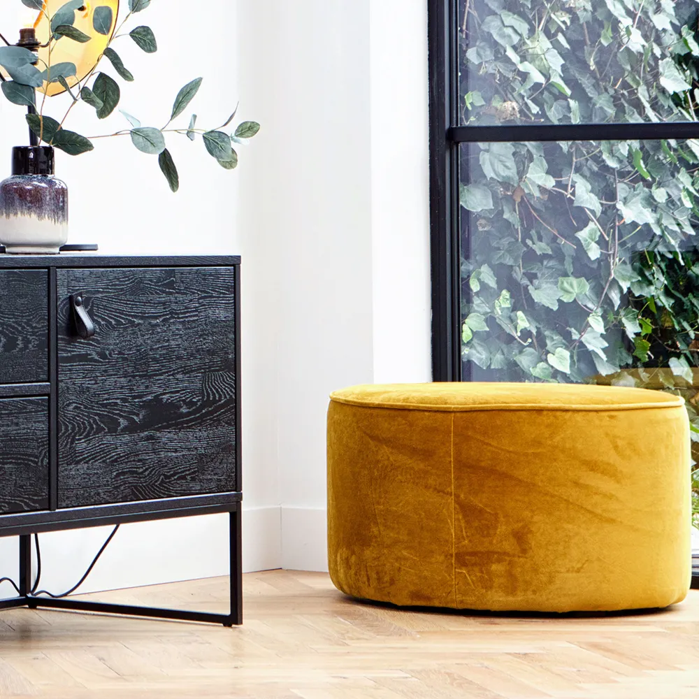 WOOOD poef Sara zorgt direct voor sfeer in huis. Poef Sara is gestoffeerd met een 100% polyester fluwelen stof in de kleur antraciet. De poef Sara heeft een zitoppervlak van 36 cm en een hoogte van 60 cm. De poef kan als extra zitplaats fungeren, maar is ook een heerlijke plek om benen op te laten rusten. De poef kan ook als bijzettafel worden gebruikt. Tip bij harde vloeren: Plaats onder de zwarte kunststof voetjes viltglijders. Dit voorkomt beschadigingen aan harde vloeren.