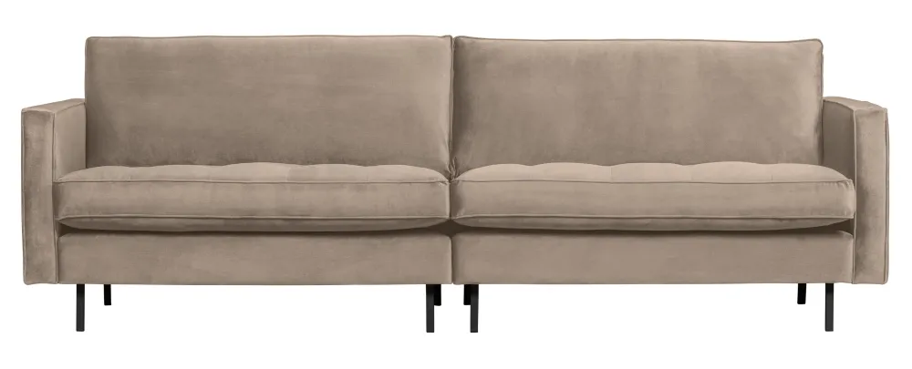De Rodeo Classic bank is opgebouwd uit een combinatie van massief hout, multiplex, spaanplaat, polyurethaan schuim met een dichtheid van 30 kg/m3 en een zigzag vering. De rugleuning bestaat uit een combinatie van 70% gesneden schuim en 30% siliconen. Deze Rodeo is bekleed met een rijke velvet. Onze Jarra fluwelen stof heeft een luxe uitstraling. De stof voelt fijn aan en heeft een mooie lichte glans. De Jarra velvet bestaat uit 100% polyester en heeft een volle en zware kwaliteit. Het materiaal is daarom geschikt voor intensief gebruik (Martindale 100.000). Naast het stijlvolle design blijft de velvet stof lang mooi. Onze Jarra stof zal niet snel pillen en is kleurvast. De stof is, tot verrassing van velen, een zeer gemakkelijke stof om te onderhouden.