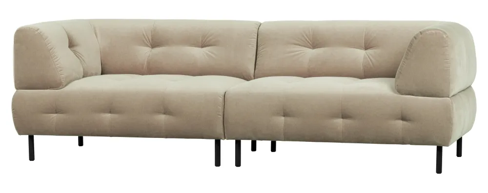 De Lloyd 4-zits bank wordt in twee pakketten geleverd en is eenvoudig aan elkaar te verbinden door de voorgemonteerde verbindingshaken aan de zijden. Plaats voor het beschermen van harde vloeren viltglijders (ø2cm) onder de poten.
