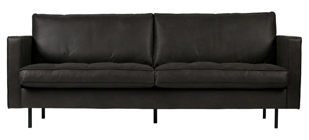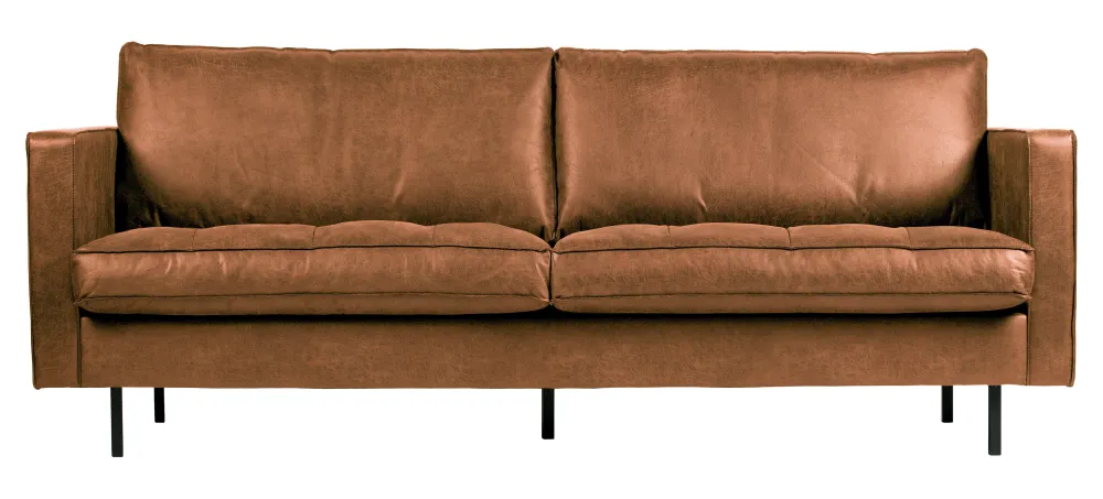 De zitmeubelserie Rodeo van het merk WOOOD is modern, stoer en eigentijds. Deze Classic variant heeft ingestikte zitkussens welke de bank een klassiek tintje geven. De bank is royaal, biedt volop zitruimte en beschikt over een stoere stof Recycle leer. Door het slanke frame en losse kussens toont de bank subtiel in de living. De poten zijn van zwart metaal. De zithoogte is 47 cm, de zitdiepte is 58 cm, de zitbreedte is 205 cm en de hoogte van de armleuningen is 72 cm. Wat is Recycle leer? Bij het snijden van de patronen van de huiden houden fabrieken restanten over. Deze restanten worden vermalen en hiervan maken we een nieuwe stof: Recycle leer. Recycle leer bestaat uit 70% écht leer en 30% polyester. De stof is opgebouwd uit twee materialen: de onderlaag bestaat uit gerecycled echt leer wat zorgt voor de natuurlijke en unieke uitstraling. Het leer wordt beschermd door een polyester afdeklaag welke oneffenheden voorkomt en waardoor het een stevige combinatiestof wordt. Onderhoud: Het Recycle leer kan niet behandeld worden met vet voor leer. Recycle leer kunt u als volgt onderhouden: met een vochtige doek kunt u de stof schoonmaken. In geval van vlekken kunt u een neutrale zeepoplossing gebruiken om de vlek mee te verwijderen. Na het verwijderen van de vlek de stof afnemen met een vochtige doek. De serie Rodeo Classic bestaat uit deze 2,5-zits bank, een 3-zits bank en een fauteuil/loveseat.