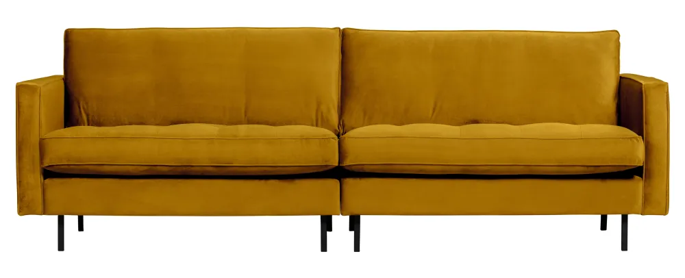 De stof velvet met een fluweel uiterlijk voelt zacht aan, is van een zware kwaliteit en geschikt voor intensief gebruik. De stof is niet getest op aanvullende behandelingen en daarom raden wij het af de bank te impregneren. Wordt dit toch nodig geacht, dan is dit voor eigen risico en adviseren wij dit op een plekje -uit het zicht- uit te testen.