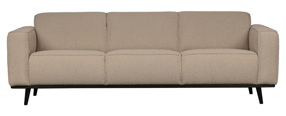 Een bank als deze staat als een duidelijk element in huis. Een bank bepaalt de sfeer van het interieur en deze bank biedt een goede basis voor meerdere woonstijlen. Deze bank Statement uit de collectie van WOOOD, is basic, maar valt door de omvang wel op. Statement is bekleed met een bouclé stof (100% PES) in een beige kleur en dat geeft de bank een chique uitstraling en voelt heerlijk aan. Deze ruime 3-zits bank biedt ruimte genoeg voor het hele gezin en zit heerlijk. De Statement bank is beschikbaar in meerdere varianten, stoffen en kleuren.