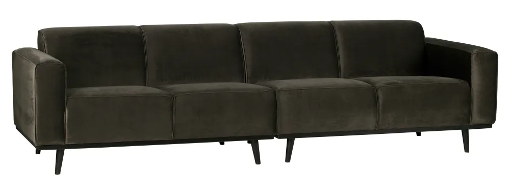 De naam van deze bank zegt genoeg, toch? Een bank als deze staat als een duidelijk element in huis. Een bank bepaalt de sfeer van het interieur en deze bank biedt een goede basis voor meerdere woonstijlen. Het design van Statement is basic, maar valt door de omvang natuurlijk wel op. Deze ruime 4-zits bank biedt ruimte genoeg voor het hele gezin en zit heerlijk. Deze bank Statement past perfect in de collectie van WOOOD, is puur en stoer en bestaat uit meerdere varianten, stoffen en kleuren. Deze variant is voorzien van warmgroen velvet.
