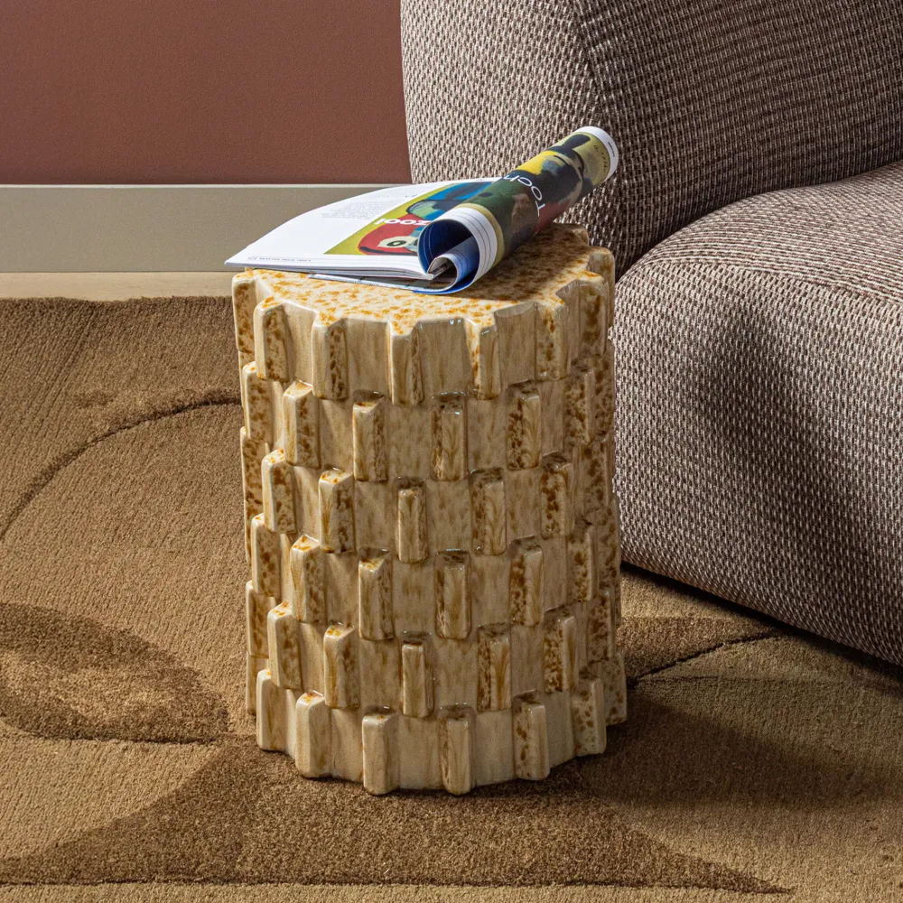 Het keramiek materiaal geeft de bijzettafel een glanzende afwerking die licht mooi weerkaatst. Keramiek wordt gevormd uit geboetseerde, afgebakken klei. De keramieken items uit onze collecties worden met een matte of glanzende laag geglazuurd, dit zorgt voor een opvallend uiterlijk en een extra bescherming van het materiaal.