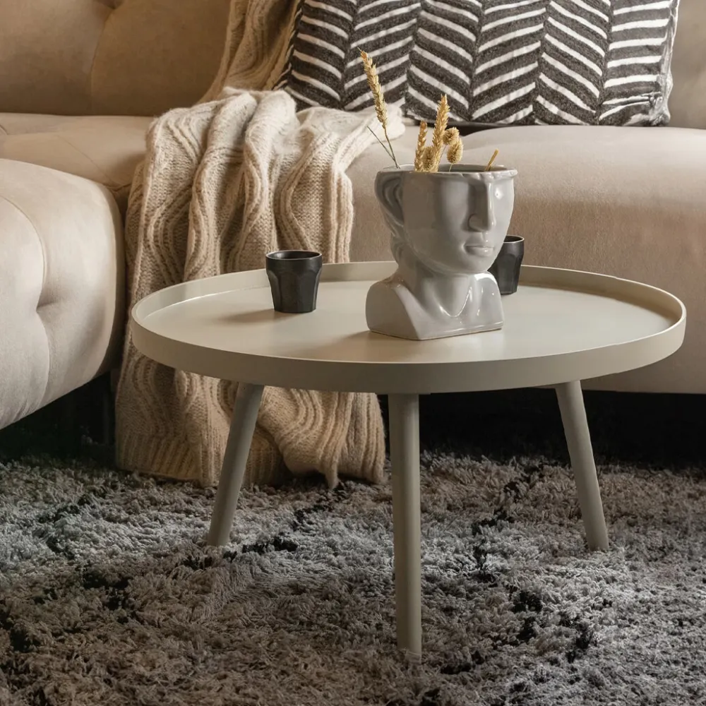 Deze royale bijzettafel heeft een hoogte van 34 cm en is 60 cm in het rond. Het tafelblad beschikt over een opstaande rand van 2 cm hoog. De poten hebben een hoogte van 31 cm en lopen van de bovenzijde ø 3 cm taps toe naar onderen tot ø 1,5 cm. Het tafeltje weegt zelf 4 kg en heeft een max draaggewicht van 5 kg wanneer gelijkmatig verdeeld.