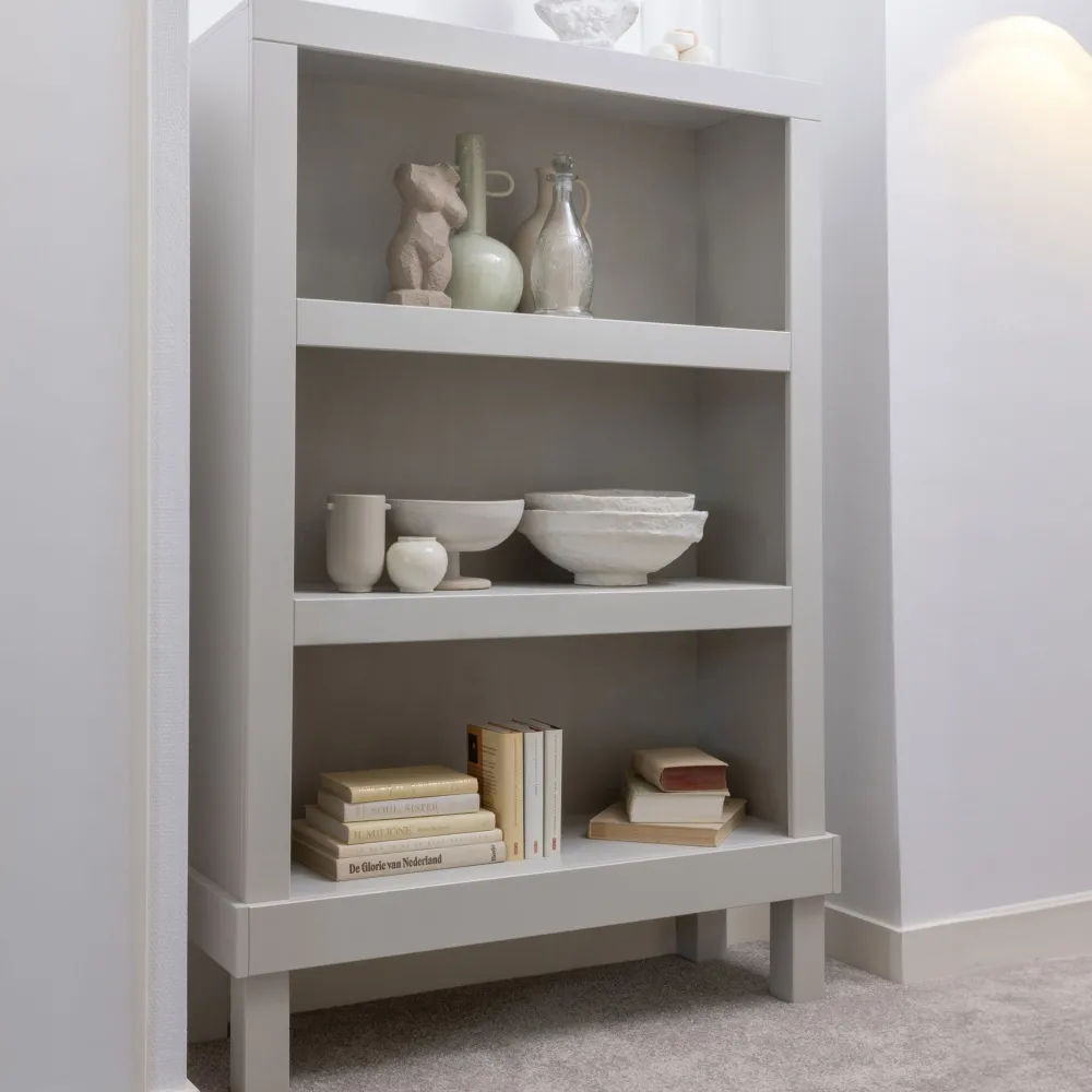 Bonk is een tijdloze, basic open kast uit de collectie van het Nederlandse merk WOOOD. Deze open kast is vervaardigd uit grenenhout, FSC gecertificeerd, en heeft een mist kleurige finish gekregen. Bonk is voorzien van 3 legplanken, waardoor deze kast genoeg ruimte biedt om accessoires te plaatsen. Door het tijdloze design past deze kast in ieder interieur thuis.