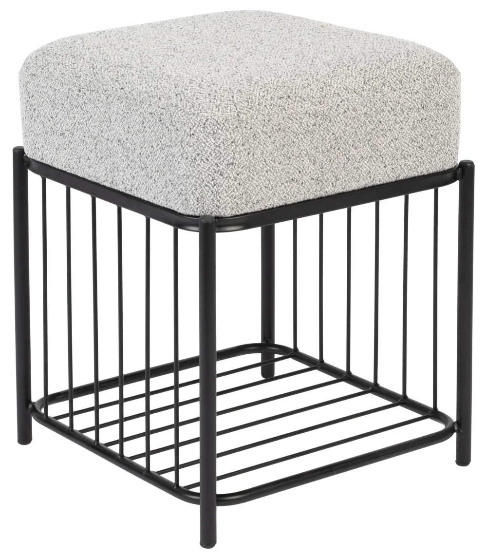 Het krukje Kamron van ZILT combineert een zachte bouclé zitting met een stoer ijzeren onderstel – een mooie mix van knus en krachtig. De ronde zitting nodigt uit om even neer te ploffen, terwijl het slanke metalen frame voor een luchtige, moderne uitstraling zorgt.