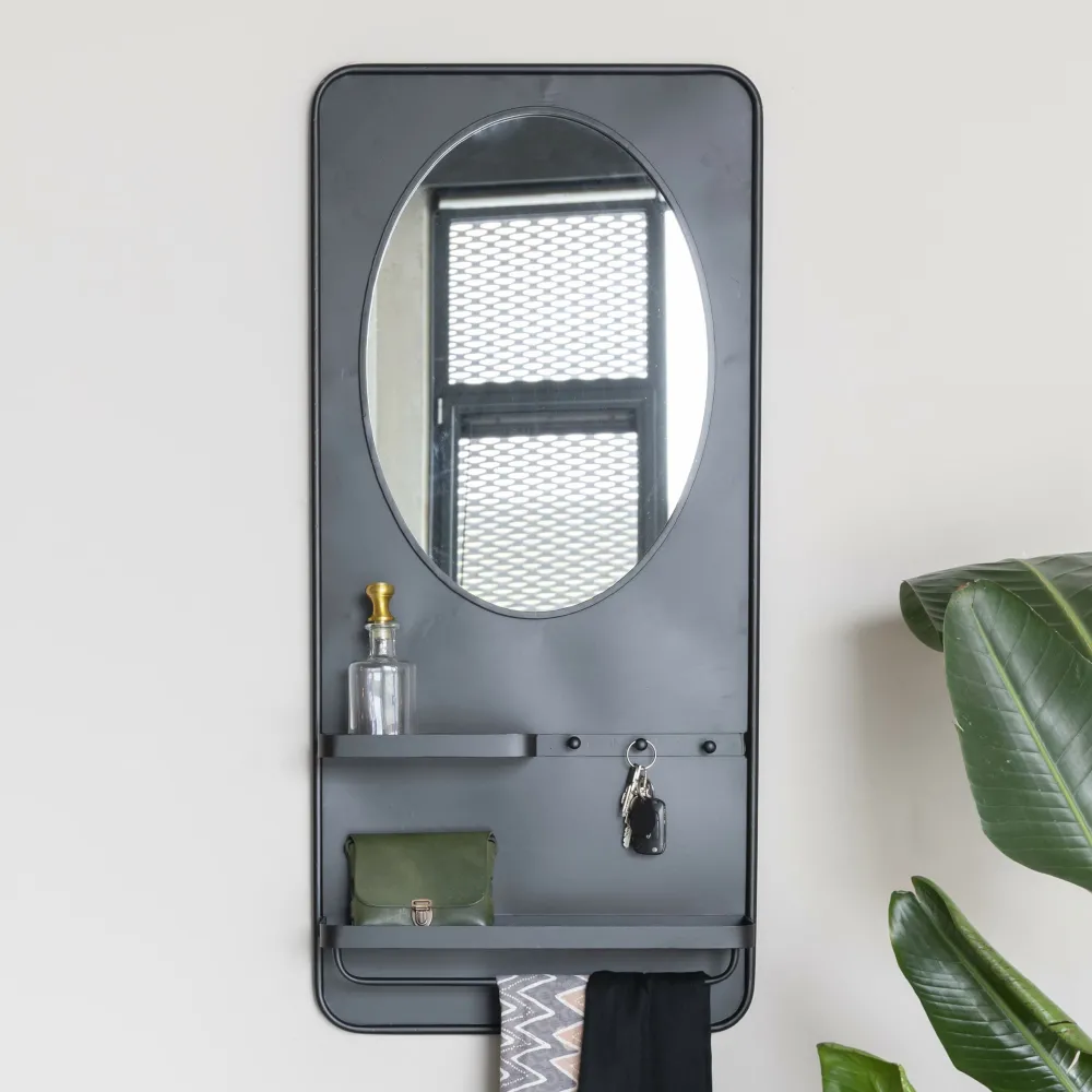 ZILT Zwarte Spiegels|Spiegel Jaros Met 2 planken en 3 haakjes, 108 x 53cm