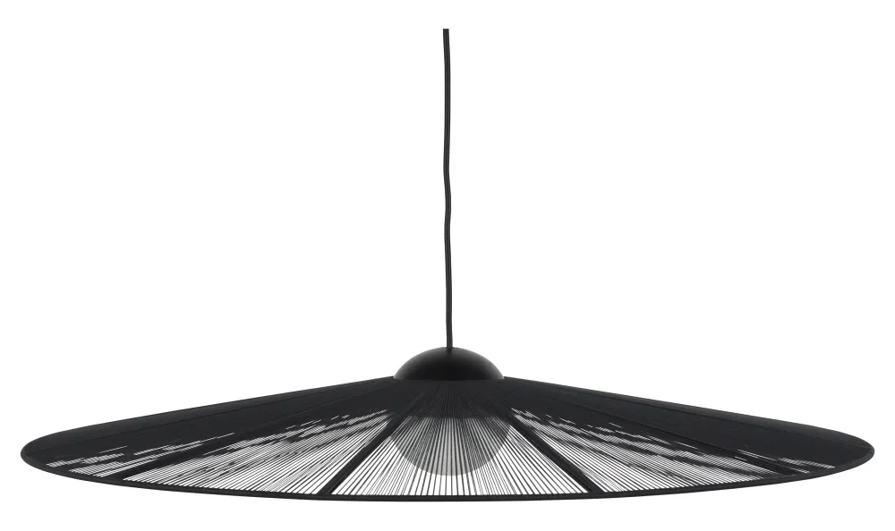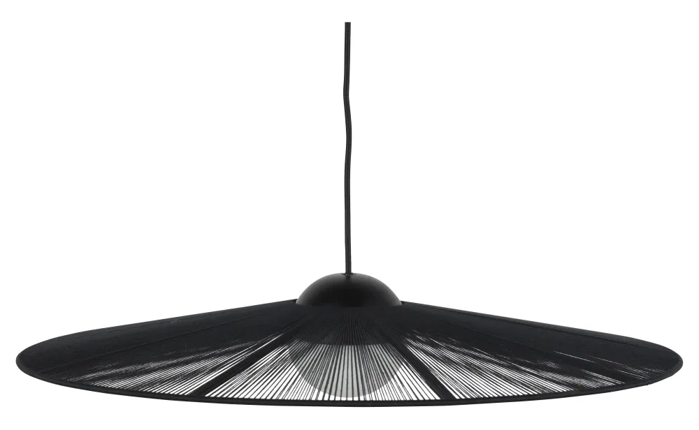 - Heeft een lampenkap met metalen frame en touw van katoen
