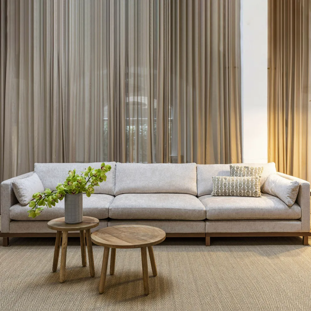 Blossom is de perfecte Japandi bank. Deze mooie, wat lagere bank staat op een futon-geïnspireerde basis die iets groter is dan de zitting. We hebben de zittingen een eigentijdse vibe gegeven met natuurlijke kleuren en een zware zachte stof. Het mooie van Blossom is dat ze vele trends met gemak zal overleven.