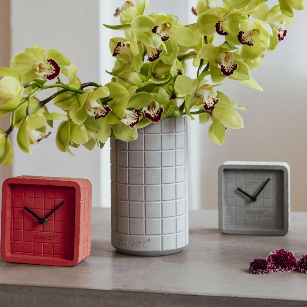 We houden van de veelzijdigheid van beton. In vaas Fajen hebben we die kwaliteiten allemaal gebruikt. De betonnen versie heeft een gefreesd ruitpatroon, door beton te mengen met marmeren steentjes kregen we een terrazzo vaas Fajen. De helemaal van marmer gemaakte vaas Fajen maakt de collectie compleet.